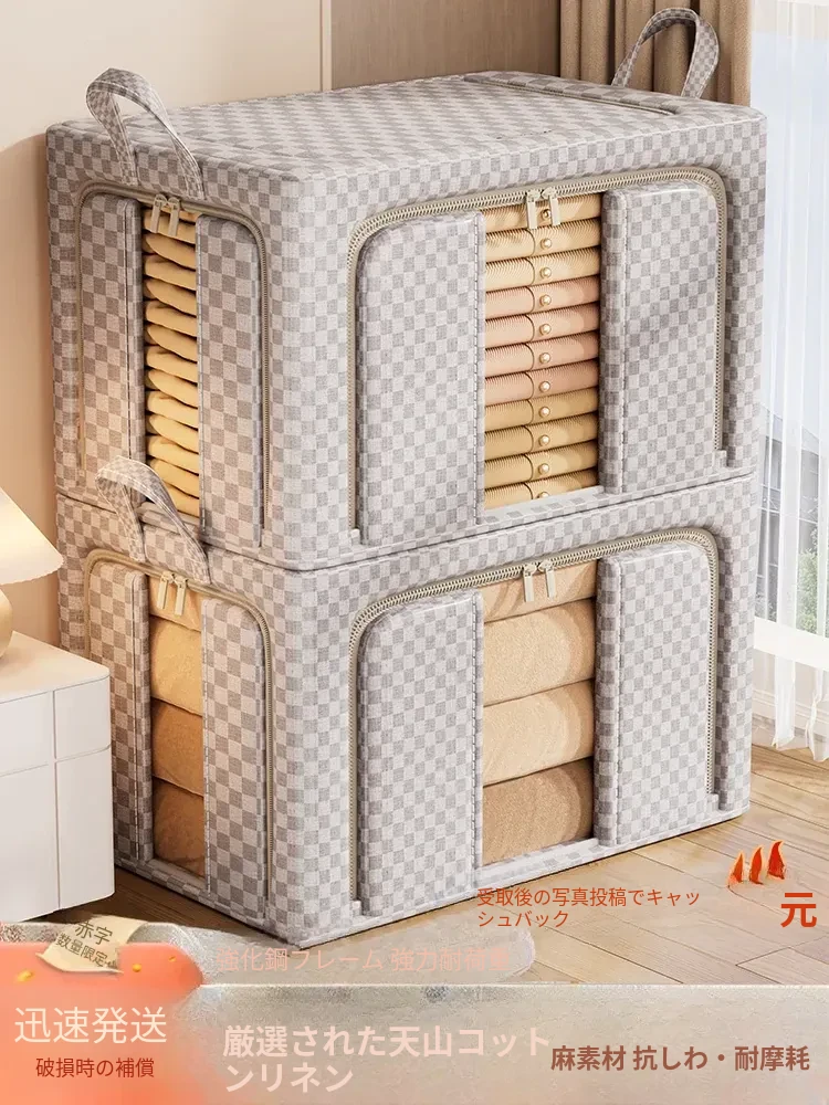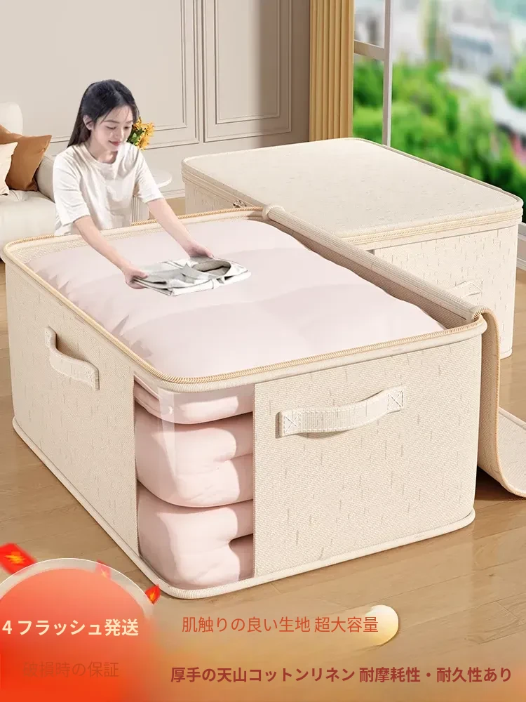 天山の綿麻衣類収納ボックス - 大容量の布製ストレージバッグ!季節の衣替えに最適、衣類や布団をスッキリ整理!家の中をクリーンに保ち、スペースを有効活用しましょう!