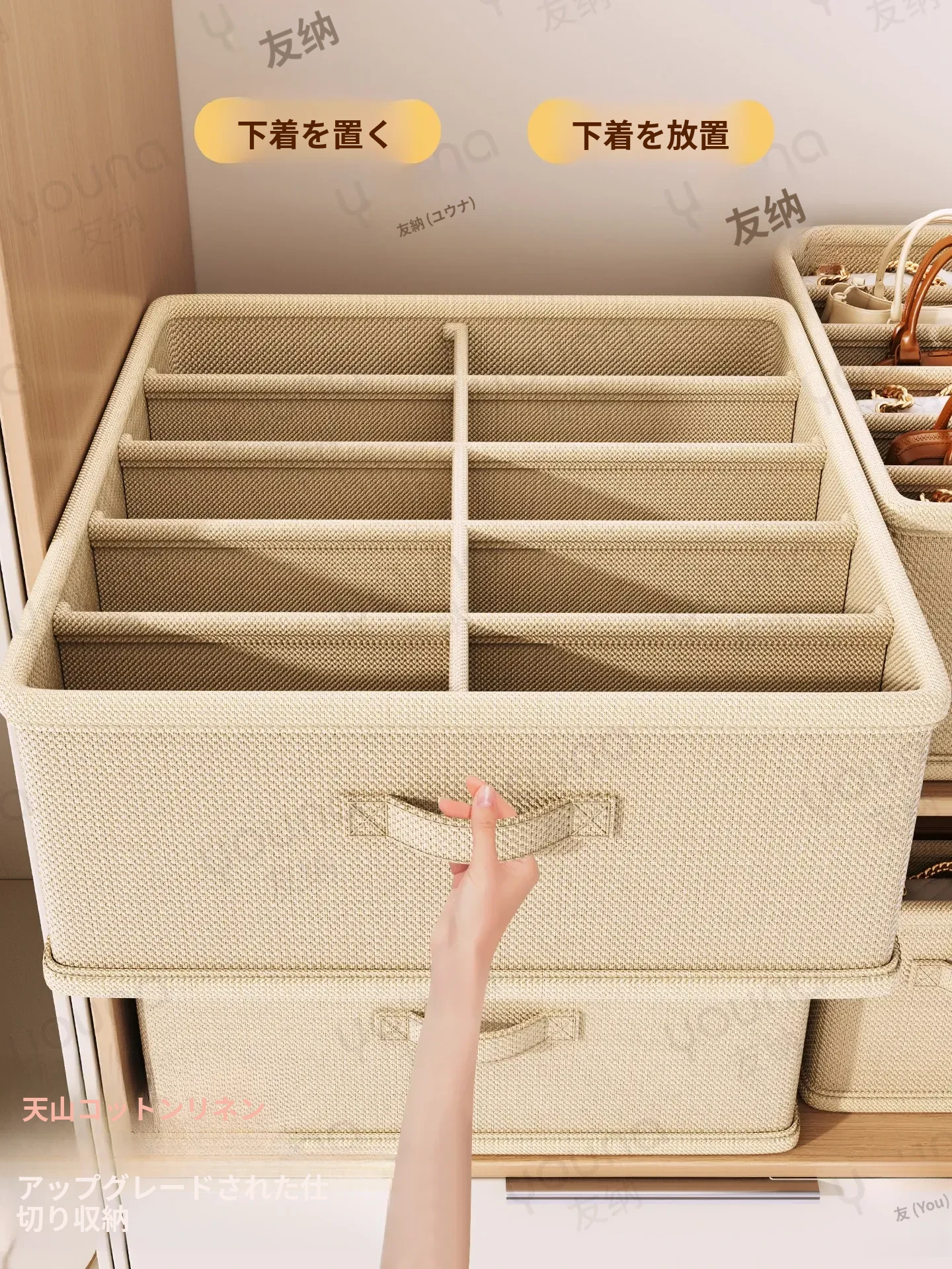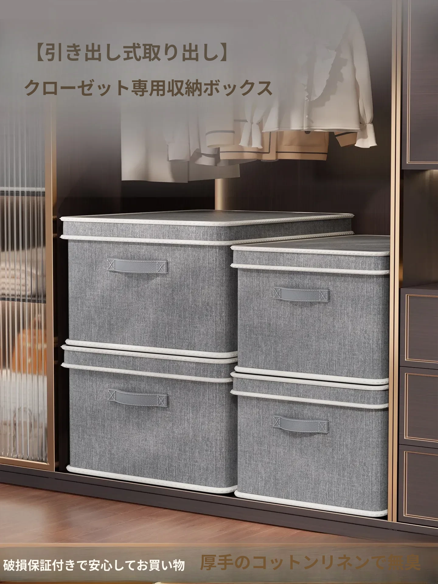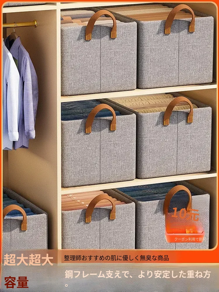 天山コットンリネン衣類収納ボックス - 家庭用クローゼットに最適!衣服や布団もすっきり整理できる折りたたみ可能なファブリック収納ボックス、スマートな収納でお部屋がスッキリ!