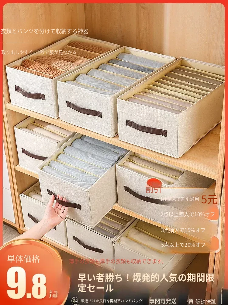 家用多機能収納ボックス!デニムパンツ専用の折りたたみ式仕切りボックスで、クローゼットをスッキリ整理。掛けずに収納でき、スペースを有効活用!おしゃれで便利なアイテムです。