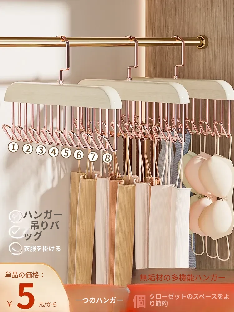 多機能木製ハンガー!下着、ストラップ、ストッキング、ベルト、スカーフをすっきり収納。クローゼットを整理整頓し、スペースを有効活用できる便利アイテム!収納袋付きで持ち運びも簡単!