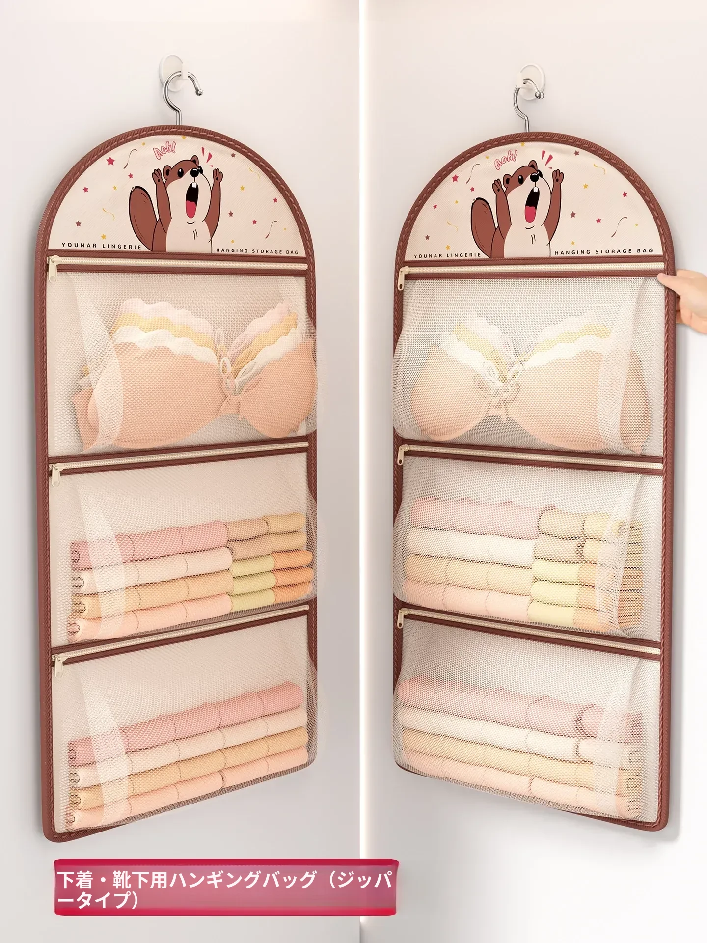 収納力抜群!両面使える内衣・下着用ハンギング収納袋 - クローゼットにぴったりな壁掛け整理ラックで、ブラやパンツをすっきり整理しよう!あなたの毎日をもっと便利にする収納マジック!