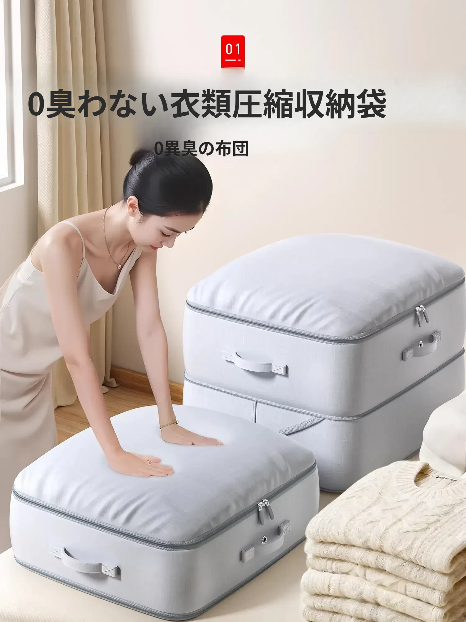 日本製ダウンジャケット専用圧縮袋!大容量収納で衣類や布団をすっきり整理。衣装ケースやクローゼットに最適なファブリック製収納バッグ。あなたの生活空間をスッキリ整えよう!