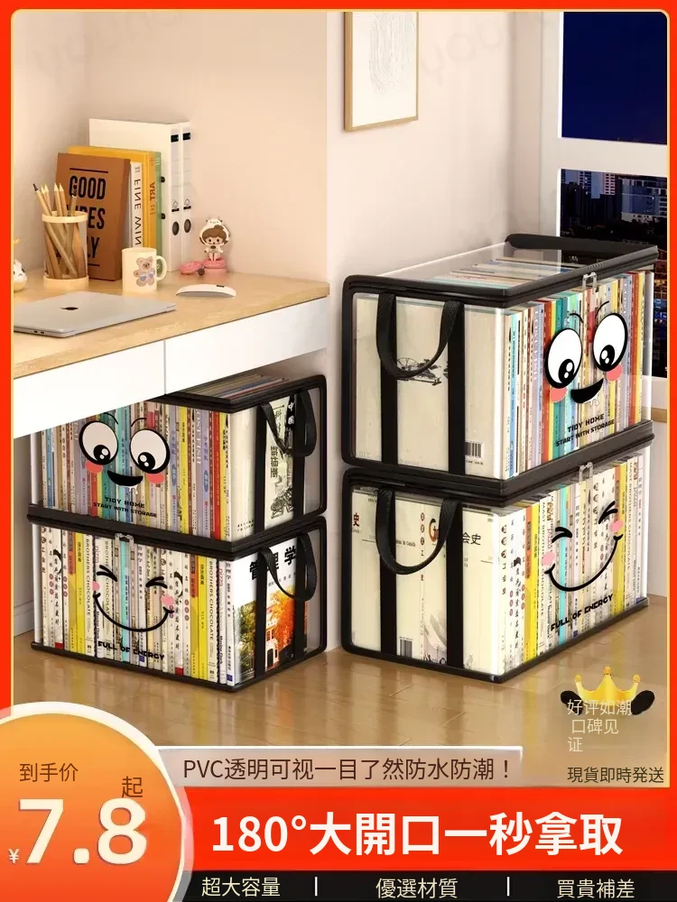 学生必見!透明書籍収納バッグ - 教室での本や絵本をスッキリ整理!防塵設計で大切な本を守り、使いやすさ抜群の収納ボックス。古本から新刊まで、全てをまとめて整理整頓!あなたの学びをサポートします。