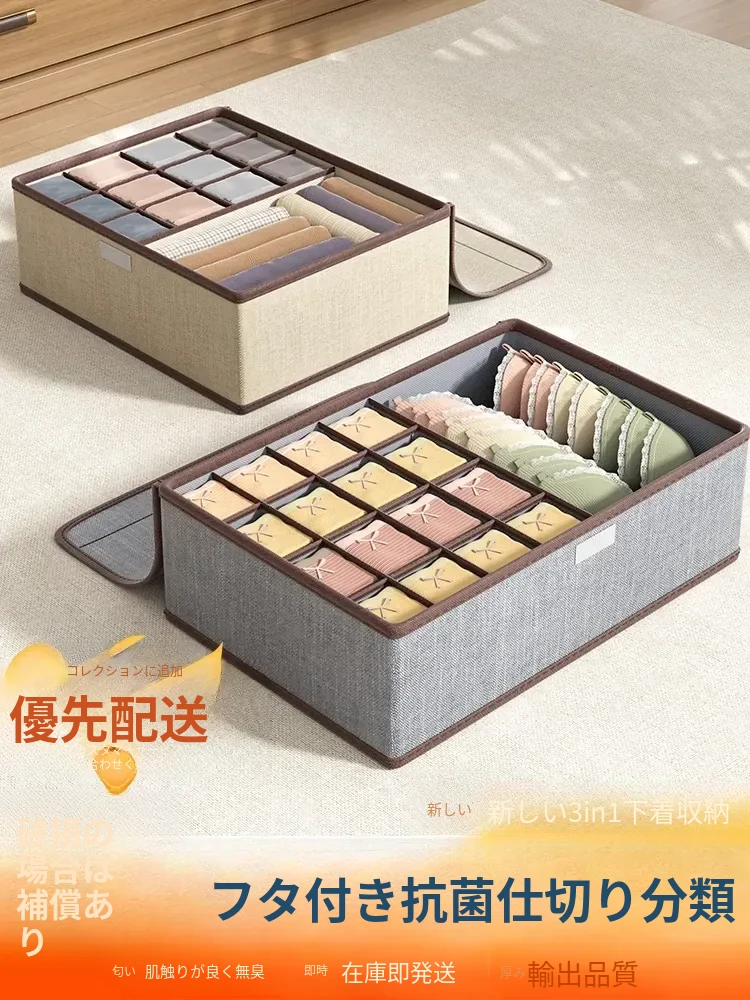 コットンリネン製の下着収納ボックス|家族や学生寮に最適!靴下やパンツをスマートに整理できる3in1引き出し式セパレーター|おしゃれで機能的な収納の必需品!