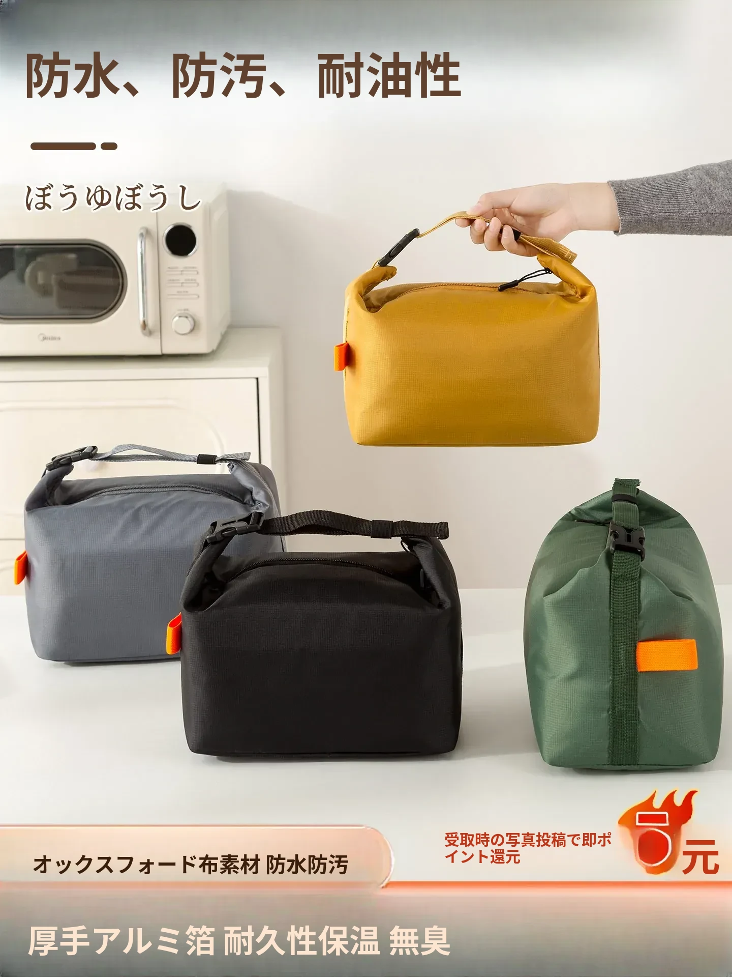 日本スタイルのランチバッグ - 持ち運び便利で保温効果抜群!大容量で学生や働く人に最適な弁当箱バッグ。おしゃれで実用的、ランチタイムをもっと楽しく!