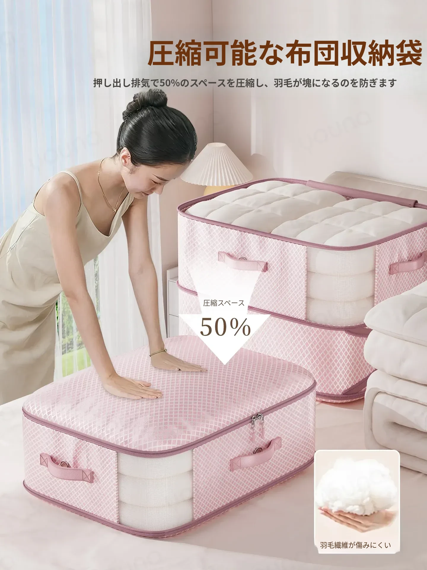 大容量ダウンジャケット収納袋 - 衣類や布団をすっきり整理!羽毛布団専用の圧縮袋で、収納スペースを有効活用!おしゃれで実用的な収納アイテムです。