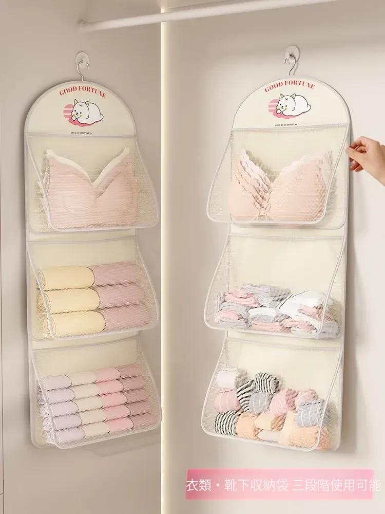 学生寮や衣類収納に最適!内衣・靴下をスマートに整理できるハンギング収納ポケット。ブラジャーやパンティーもすっきり収納できる便利なネットバッグで、スペースを有効活用しましょう!