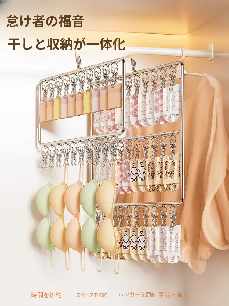 ステンレス製靴下干しラック 多機能クリップ付き 家庭用 風に強い洗濯物干し 便利な下着・パンツ用クリップ!これ一つでお部屋がスッキリ!