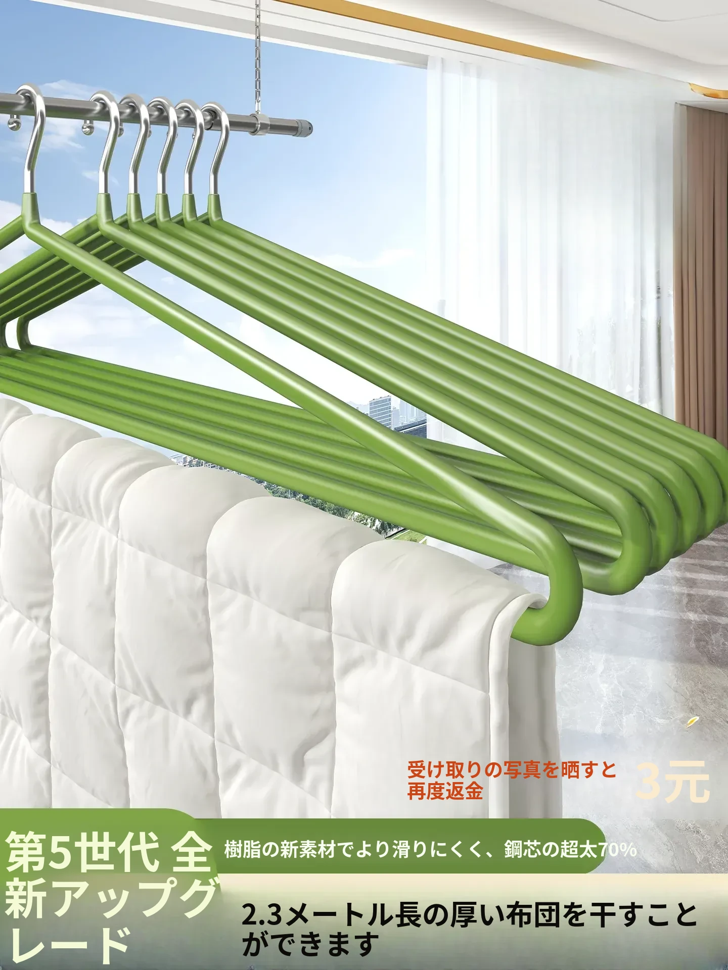 日本製 洗濯物干しハンガー - バルコニー用!布団やシーツ、バスタオルに最適な大サイズ・強化版!しっかり支えて、ふんわり乾燥。家での便利グッズ、今すぐゲット!
