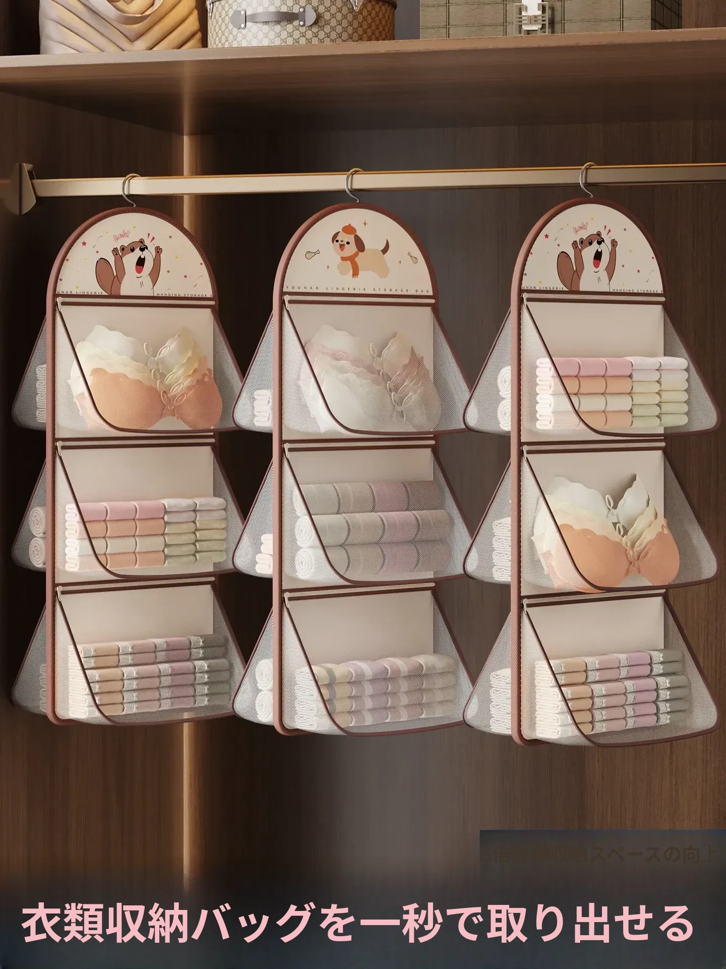 学生寮必見!内衣・靴下収納ハンギングポケット - クローゼットのドア裏に掛けるだけで、スッキリ整理!コンパクトで便利なネットバッグ、あなたの生活をもっと快適に!