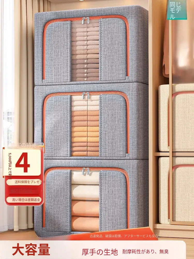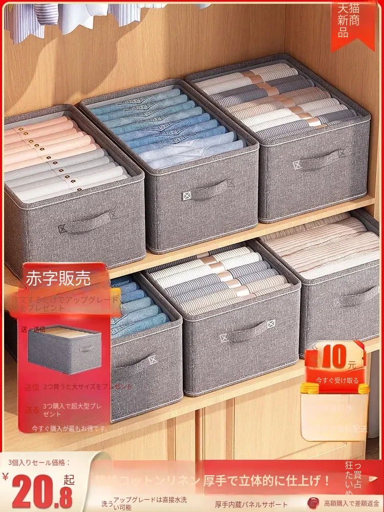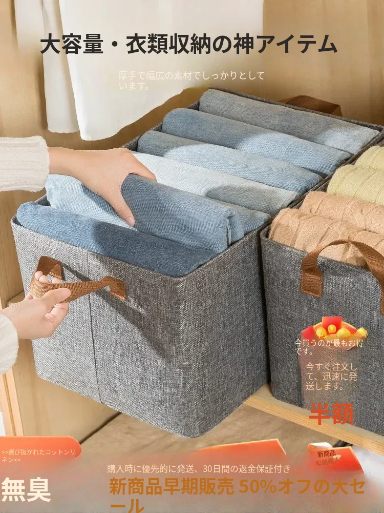 厚手コットンリネン衣類収納ボックス|家庭用布製衣類整理ケース|折りたたみ可能なクローゼット|寮用収納バスケット|スッキリ整理で快適空間を実現!